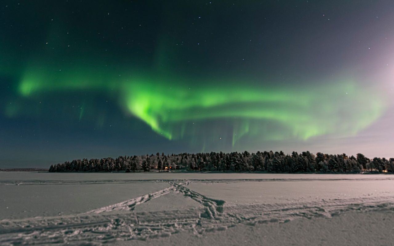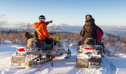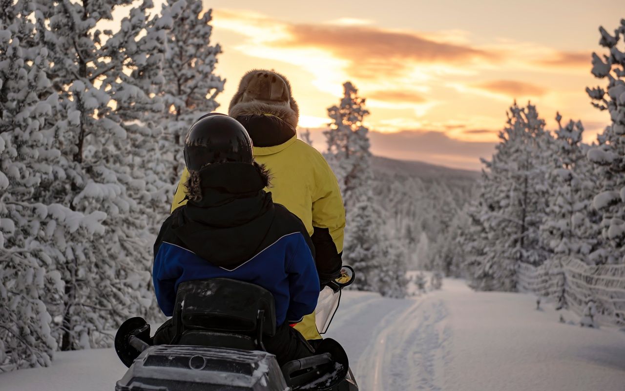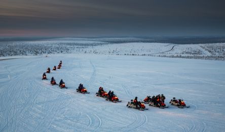 Votre aventure en motoneige débute à Saariselkä. Après la prise en main des machines, vous partez vers le nord et traversez de vastes étendues gelées. Vous franchissez le lac Inari, entièrement pris par la glace, avant de rejoindre la ferme de rennes Sanila à Sevettijärvi. En fin de journée, dîner et sauna vous attendent pour récupérer de cette première longue étape.