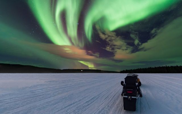 Passez Noël en Laponie, au cœur d’un décor façonné par la neige et la lumière hivernale. En motoneige, vous traversez des forêts polaires et progressez dans un environnement calme et immaculé. Sur votre route, vous pouvez apercevoir rennes ou élans évoluer dans leur habitat naturel. Les journées alternent exploration et instants plus contemplatifs. À la nuit tombée, le ciel peut s’illuminer d’aurores boréales. Vous vivez l’hiver nordique dans une atmosphère à la fois sauvage et chaleureuse.