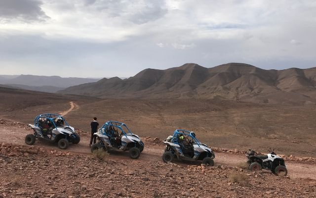 Un véhicule vous conduit au point de départ où vous rencontrez l’équipe. Vous recevez votre équipement et un briefing de sécurité avant la prise en main des buggys. Vous traversez la plaine de Tnine Ourika puis longez la vallée de l’Ourika entre vergers et cultures. Après une pause à Terre d’Amanar, vous poursuivez vers la vallée d’Asni par des routes de montagne sinueuses jusqu’à Ouirgane. Nuit en auberge.