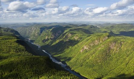 Vous entamez une étape plus technique avec un tracé engagé. Vous montez vers les chutes du Bras-Pilote avant de suivre la rivière Sainte-Marguerite à travers les paysages puissants des Monts-Valin. Vous franchissez des reliefs affirmés et des pentes soutenues jusqu’au fjord, au cœur d’une région parmi les plus préservées du Québec.