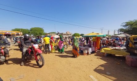 Vous roulez à travers les grandes étendues du Ferlo, entre savane et marchés locaux. À l’approche du fleuve Sénégal, la végétation se densifie. Vous passez la nuit à Dagana, au bord du fleuve.