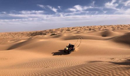 Vous débutez votre aventure en buggy par le village berbère de Chenini et ses habitations troglodytes dominées par sa mosquée blanche. Vous poursuivez par des pistes vers le désert du Sahara et rejoignez l’oasis de Ksar Ghilane, connue pour sa source chaude. Après un passage par le fort romain, vous traversez les dunes jusqu’au campement de Garat Abdrehaim. Nuit sous tente berbère.