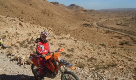 Après le briefing, vous prenez vos motos et partez explorer la région des ksour. Vous roulez sur des pistes montagneuses jusqu’au village berbère de Guermessa. Vous découvrez son ksar, ses habitations troglodytes, ses anciens pressoirs et son école coranique. En fin de journée, vous revenez à Tataouine pour la nuit.